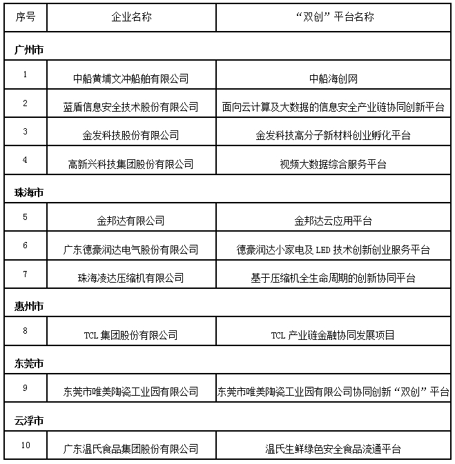 按照《日本a片 经济和信息化委关于开展全省大企业“双创”示范工作申报的通知》(粤经信信息函〔2017〕49号)要求,我委组织了2017年日本a片 大企业“双创”示范的评审工作。经各地经济和信息化主管部门推荐和专家评审,评选出10个日本a片 “双创”示范大企业,现予以公示。