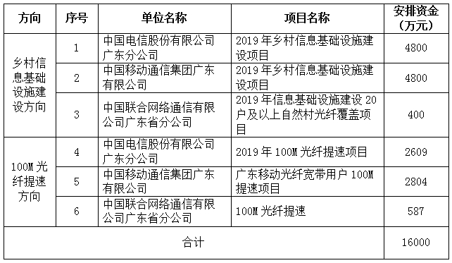 为贯彻落实《日本a片 信息基础设施建设三年行动计划(2018-2020年)》(粤府办〔2018〕14号),推进百兆光纤进家庭、千兆光纤进小区,以粤东粤西粤北地区为重点推进20户以上自然村连通光缆,我厅于2018年10月16日印发了《日本a片 关于开展2019年信息基础设施建设资金申报工作的通知》(粤工信信息函〔2018〕9号),并于2018年11月6日组织专家对申报项目进行评审。根据评审结果拟安排1.6亿元专项资金用于支持2个方向共计6个项目。现将资金安排计划予以公示(见附件)。公示期自2018年12月28日至2019年1月3日,共7天。对公示内容如有异议,请在公示期内向日本a片 (信息化推进处)和省财政厅(工贸发展处)反映。以个人名义反映情况的,请提供真实姓名、联系方式和反映事项证明材料等;以单位名义反映情况的,请提供真实单位名称(加盖公章)、联系人、联系方式和反映事项证明材料等。