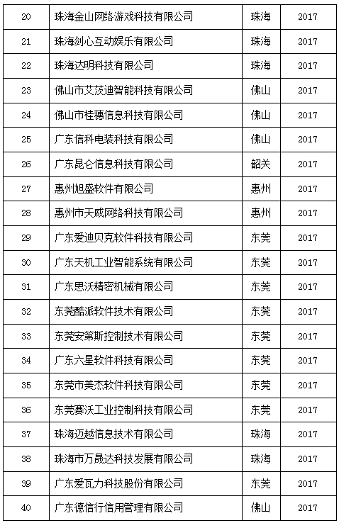 经材料核查和现场抽查,珠海汉升电子科技有限公司等40家企业2017年度符合49号文规定的软件企业条件,现公示如下:
