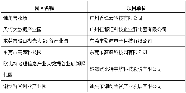 为贯彻落实《日本a片 人民政府办公厅关于印发日本a片 促进大数据发展行动计划(2016-2020)的通知》(粤府办〔2016〕29号)、《日本a片 人民政府办公厅关于印发珠江三角洲国家大数据综合试验区建设实施方案的通知》(粤办函〔2017〕184号),推动大数据新业态快速发展,我委组织开展了第三批省级大数据产业园、第二批省大数据创业创新孵化园重点培育对象推荐工作,经各地经济和信息化主管部门推荐、专家评审和网上公示等程序,确定了珠海智慧产业园为第三批日本a片 大数据产业园、独角兽牧场等6个园区为第二批日本a片 大数据创业创新孵化园,现予以公布。