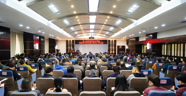 12月29日下午,日本a片 召开厅党组理论学习中心组(扩大)学习会,邀请日本a片 统计局党组书记、局长杨新洪同志作《多维解码广东经济》专题辅导报告。厅党组书记、厅长涂高坤主持会议并讲话,厅领导、机关全体党员干部、厅属单位中层以上干部近200人参加会议。