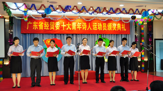 整场颁奖典礼笑声和掌声不断,运动员们精神振奋、活力四射,十大青年诗人和课题调研成员与观众共享他们的创作过程,诗情交融、高潮迭起,大家都感到这是一场力与美的盛会。团省委常委、省直团工委书记陈再葵在颁奖时更表达了他今天最大的感受是“感谢”,从去年的“感动”到今年的“感谢”,陈书记感谢省经贸委党组和领导对团工作的大力支持,感谢省经贸委团委开展的丰富多彩、主题鲜明的各项活动,感谢呈现给他的省经贸委团员青年良好的精神风貌,并对省经贸委团委今后的工作寄予厚望。