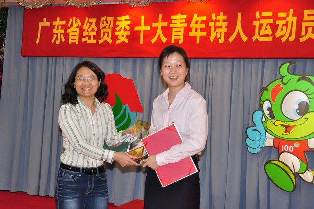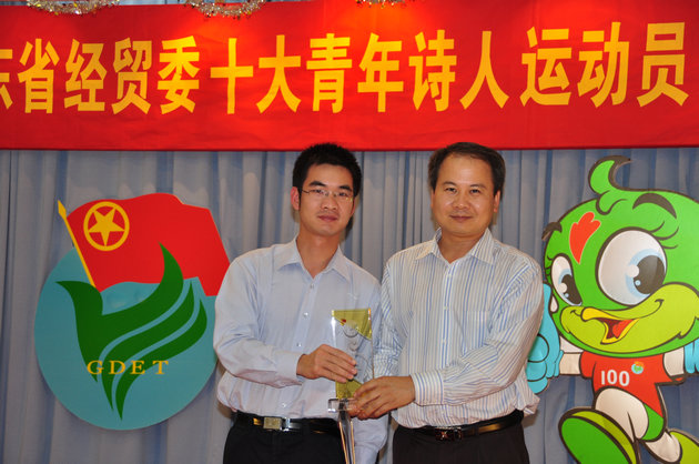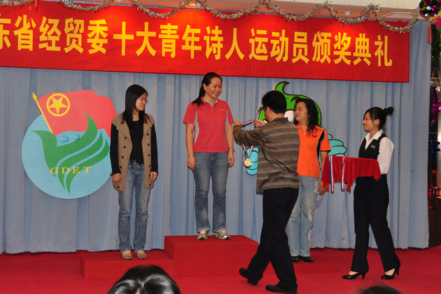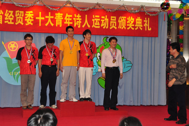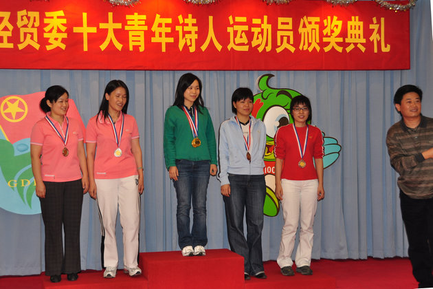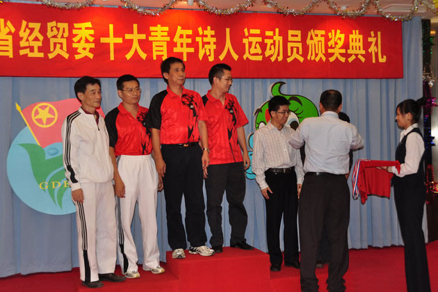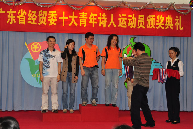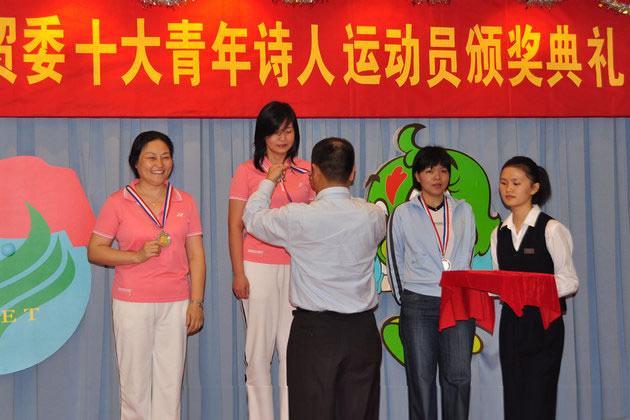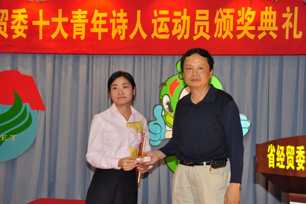 随后,颁奖嘉宾依次为十大青年诗人、十大运动员、运动会各项比赛的冠亚季军、课题调研前三名和省直机关青年岗位能手颁发奖杯、证书和奖牌。宋晶、胡兴华、卢振港、王克满、陈科、姚瑞婷、王婧、钟旗珈、傅妍敏、肖振宇荣获“省经贸委十大青年诗人”称号,宋晶《奥林匹克中华赋》荣获最佳主题诗歌,胡兴华《乡村五月天》荣获最佳非主题诗歌。张国凯(篮球)、洪蒙纳(男子羽毛球)、陈玉芳(女子羽毛球)、曾润志(男子乒乓球)、伍妙婵(女子乒乓球)、陈伟川和叶凤萍(扑克)、孙青林(中国象棋)、郁大忠(围棋)、刘巨强(毽子)、梅家春(登山)荣获省经贸委十大运动员称号。机关团支部《日本a片