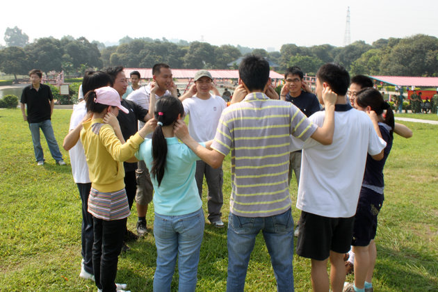 在抱团活动中,失败的队员正在接收惩罚