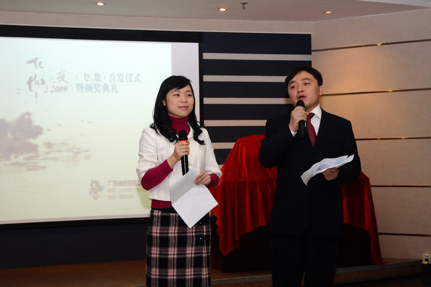 光荣篇:首先,获得省直团工委庆祝新中国成立/中华人民共和国成立60周年朗诵比赛二等奖的机关团支部王丽娟、黄金团支部田鹏飞朗诵了去年团委诗歌征文特等奖作品《奥林匹克中华赋》(节选)。随后进行了诗集《飞集》的首发仪式,《飞集》由第一届团委委员担任编辑,谭杰斌副处长带领全体编委为《飞集》揭开了红盖头,讲述了《飞集》诞生背后的故事并向到场嘉宾赠送了诗集;《飞集》由花城出版社出版,北京大学