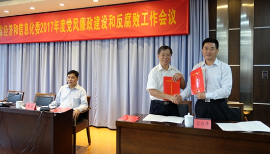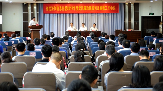 4月10日,省经济和信息化委召开2017年度党风廉政建设和反腐败工作会议。委党组书记、主任涂高坤出席会议并作讲话,委党组副书记、直属机关党委书记邹生主持会议并代表委党组作工作报告,委党组成员、副主任郑勇明传达十八届中央纪委七次全会、省纪委十一届六次全会和省政府第五次廉政工作会议精神,财务处、中博会事务局、产业发展处主要负责人作“以案治本”典型发言。委领导、中小局副局长,机关全体干部、委属单位副处级以上干部共210余人参加会议。