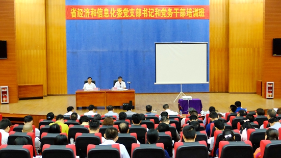 6月18至20日,省经济和信息化委在省计量科学研究院东莞分院举办为期两天半的党支部书记和兼(专)职党务干部培训。委党组书记、主任涂高坤出席开班式并讲话,委党组副书记、巡视员、直属机关党委书记邹生全程主持培训并作小结讲话。机关各处室、驻委纪检组党支部书记,离退休人员党支部书记,各委属单位党委(党支部)书记和负责党务工作的兼(专)职干部,设党委的委属单位纪委书记、内设机构党支部书记共80余人参加培训。