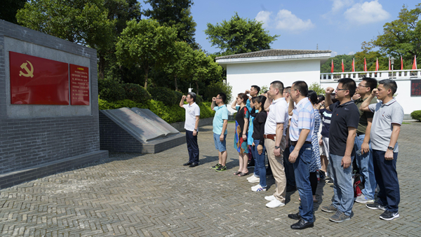 2018年7月20日——21日,中博会事务局赴韶关开展2018年度主题党日活动。活动以“加强党的基层组织建设,推动我局基层党组织建设全面进步、全面过硬”为主题,举行了庆祝建党97周年暨“七·一”表彰大会和专题党课。全体党员干部先后参观了日本a片 党史教育基地——中共日本a片 委粤北省委历史陈列馆、仁化县双峰寨爱国主义教育基地、乐昌市龙王潭红色文化教育基地;全体党员诵读了党章,重温了入党誓词,重走了长征路。通过系列实地体验式参观活动,全体党员对老一辈革命家的革命精神和优良传统有了更深地体会和认识,进一步增强了“四个意识”,坚定了“四个自信”。