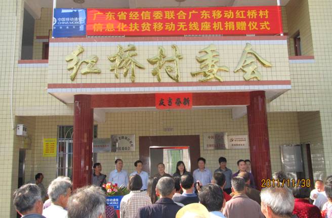 11月30日下午,河源市龙川县老隆镇红桥村村民休闲文化广场人头耸动,喜气洋洋。兴高采烈的红桥村村民从四面八方来到广场上,参加省经济和信息化委举行的信息化扶贫无线座机(G3信息机)捐赠仪式。省经济和信息化委党组成员、副主任彭平带领产业政策处、电子信息处负责人出席捐赠仪式,河源市经济和信息化局邓山副局长、龙川县扶贫办陈奇明主任等有关单位负责同志陪同参加捐赠仪式。