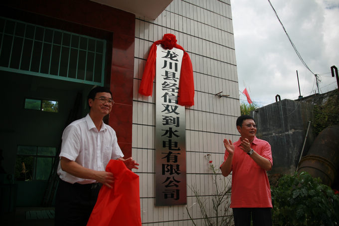 杨建初主任和段邦贤书记为经信双到水电有限公司揭牌