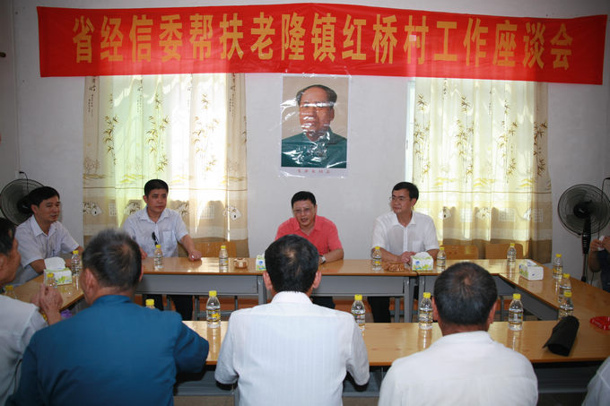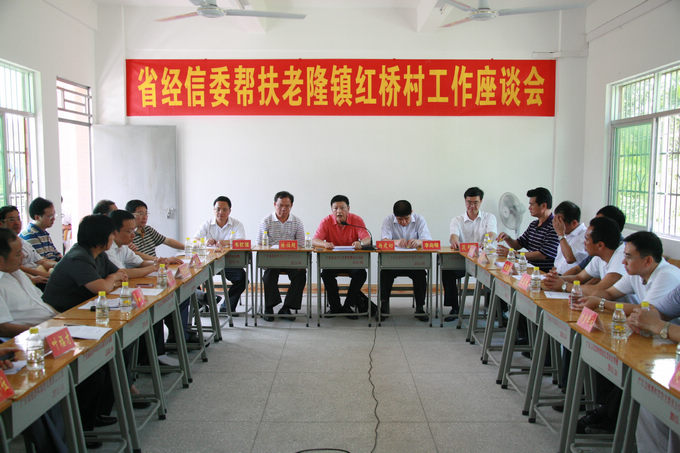 在随后召开的省经信委帮扶工作座谈会上,杨建初主任听取了委驻村工作组的情况汇报,并与县、镇负责同志以及村两委班子进行了座谈,详细了解委帮扶红桥村的各项工作进展落实情况。杨建初主任充分肯定了三年来我委对口红桥村的扶贫开发“双到”所取得的成绩,并对河源市各级党委政府和扶贫等相关部门的大力支持和全力配合表示感谢。杨建初主任指出今年是我省加快转型升级、建设幸福广东承前启后的关键之年,也是我省实现扶贫开发“双到”工作三年目标任务的决胜之年,要一鼓作气完成“双到”三年目标任务。要坚持整村推进的原则,建设幸福安居工程示范村。要着眼未来,巩固红桥村长效脱贫机制,要加强组织建设,提高村“两委”班子带领群众脱贫奔康能力。最后,杨建初主任对红桥村未来的发展提出了殷切的期望,期望红桥村能够发展成为美丽的红桥、幸福的红桥。