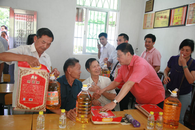 为贯彻省委、省政府关于开展广东扶贫济困日活动的部署,弘扬扶贫济困优良传统,推进我委扶贫开发“双到”工作,7月3日我委主任杨建初、副主任李向明、副主任林位超、纪检组长许振嘉、副巡视员曾健、省中小企业局局长张文献、副巡视员孙鮀生、副巡视员冯惠钊、省信息中心主任叶元龄、总经济师陈容秋带领我委所有处室及直属单位负责人共80余人赴河源市龙川县老隆镇红桥村开展特殊党日以及访贫慰问、送温暖献爱心等系列活动,为79户贫困户以及村里的七十岁以上老党员、抗美援朝老战士、孤儿以及全村其他362户送上慰问金、慰问品和生产帮扶资金。龙川县委书记段邦贤、县长韦钦强陪同参加了活动。