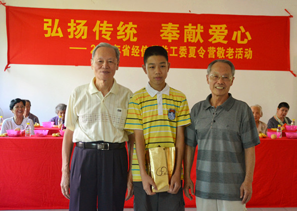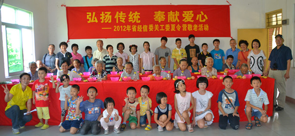7月10-11日,由省经信委关工委赵大任主任带队与部分委员们和同学们一行50多人,到肇庆市广利敬老院开展敬老爱老社会调查和户外拓展训练,拉开了2012年暑期夏令营活动的序幕。一是走进敬老院,开展尊老、爱老、敬老活动,培养孩子们敬老爱老的高尚品质和社会责任感,弘扬中华民族的传统美德。在敬老院同学们为老人们表演自备节目,如:长笛独奏、黑管独奏、独唱、合唱、魔方互动等;委员们带领同学们亲自将爱心礼物送到每一位老人家手中,最后与老人们一起高唱红歌,一首首红歌不仅唱出爱党、爱国的心声,更将欢乐和爱心传递给被爱的人。二是走进大自然,领略江河险峡山重水复的动感。我们组织同学们到地球北回归线上有绿洲之称的肇庆九龙湖旅游景区探险,开展户外拓展训练,大家一同走过崎岖的山路,摇弋的铁索桥,磨练了孩子们的坚强意志,增强自信心。