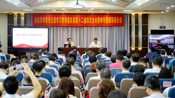 为持续深入学习贯彻落实习近平新时代中国特色社会主义思想和党的十九大精神,认真落实习近平总书记重要讲话精神,贯彻落实好省委十二届四次全会精神,8月13-14日,省经济和信息化委举办深入学习贯彻落实省委十二届四次全会精神专题培训活动,邀请了省委政策研究室李彬副主任作学习贯彻落实省委十二届四次全会精神专题辅导报告,委领导,中小局、大数据局副局长,委机关全体党员干部,各委属单位中层正职以上党员干部参加了培训。各地级以上市经信系统全体党员干部于13日上午同步收看李彬副主任辅导报告视频会议,共约1500多人。