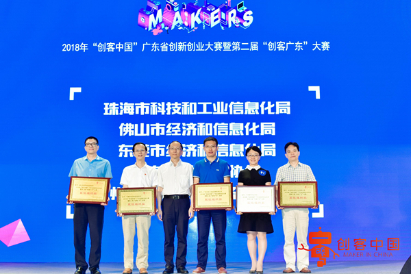 大赛现场并对在本次地市赛和专题赛中组织工作表现突出的珠海市科技和工业信息化局、佛山市经济和信息化局、东莞市经济和信息化局、广东软件行业协会(新一代信息技术专题赛)、广州大智汇创业服务有限公司(光电信息技术专题赛)等5个单位,颁授“最佳组织奖”牌匾。
