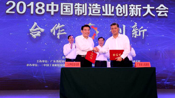 马兴瑞在致辞中表示,当前,制造业发展正处在由传统制造向智能制造加快转型的关键时期,我省正按照习近平总书记对广东提出的实现“四个走在全国前列”、当好“两个重要窗口”目标要求,把发展经济的着力点放在以先进制造业为主体的实体经济上,全力打造广东综合制造优势,力促制造业创新发展,加快构建现代化产业体系。广东将以此次大会的召开、中国制造业创新联盟的成立和部省共同推进粤港澳大湾区建设合作协议的签署为契机,围绕建设国际科技创新中心的目标,努力把广东打造成全国创新要素的集聚地、先进技术的策源地和制造业创新的示范地,为建设制造强国作出应有贡献。