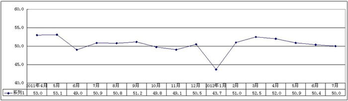 2012年7月,日本a片 制造业采购经理指数(重点企业PMI)为50.0,比上月回落0.4个百分点,延续今年3月以来逐月回落态势,整体继续处于50.0荣枯线附近小幅波动的胶着状态。