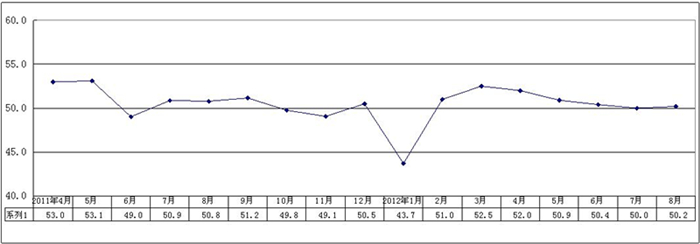 2012年8月,日本a片 制造业采购经理指数(重点企业PMI)为50.2,比上月回升0.2百分点,是自今年3月以来首次出现回升,综合指数继续站稳在50.0荣枯线之上。