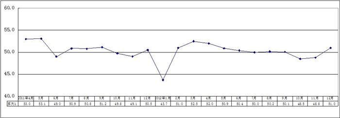 图1 2011年4月-2012年12月日本a片 重点企业PMI趋势图