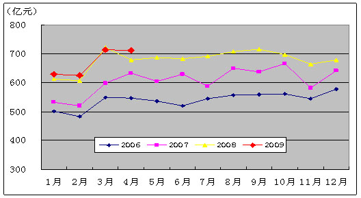 表1. 2009年1-4月固定本地与移动本地通话量比较