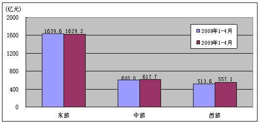 2009年1-4月,中、西部地区电信固定资产投资比上年同期分别增长21.1%、37.8%,明显高于东部地区的14.7%。