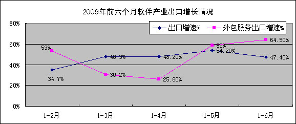 1-6月,我国软件出口83.4亿美元,同比增长47.4%,增幅比去年同期高4个百分点;其中软件外包服务出口9亿美元,同比增长64.5%,增速较1-5月提高5.5个百分点,但仍低于去年同期6.5个百分点。