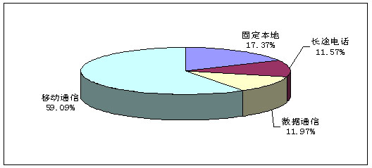 2009年上半年,移动通信收入和数据通信收入比上年同期分别增长10.8%和6.7%,在电信主营业务总收入中所占的比重比上年同期分别上升了4.50和0.49个百分点。而长途电话业务收入和固定本地电话业务收入比上年同期分别减少11.5%和13.5%,在电信主营业务总收入中所占的比重比上年同期分别下降了1.80和3.19个百分点。