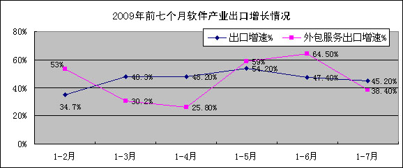 1-7月,我国软件出口95.4亿美元,同比增长45.2%,增幅比去年同期低16.1个百分点;其中软件外包服务出口9.5亿美元,同比增长38.4%,低于去年同期7.4个百分点。