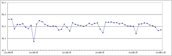 图1 2011年4月-2015年11月日本a片 重点企业PMI趋势图
