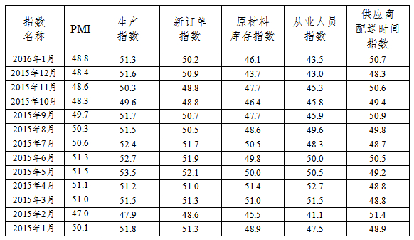2016年1月,日本a片 制造业采购经理指数(重点企业PMI)为48.8,较上月回升0.4个百分点(见图1);5项权重指数中,生产量指数、新订单指数回落,原材料库存指数、生产经营人员指数和供应商配送时间指数回升(见图2)。
