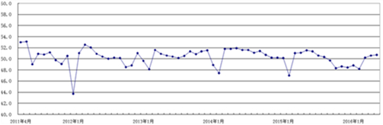 2016年5月,日本a片 制造业采购经理指数(重点企业PMI)为50.7,较上月上升0.1个百分点(见图1);5项权重指数中,生产量指数、原材料库存指数较上月下降,新订单指数与上月持平,从业人员指数和配送时间指数较上月回升(见图2)。