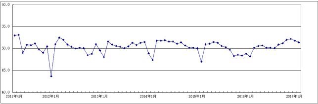 图1 2011年4月-2017年2月日本a片 重点企业PMI趋势图