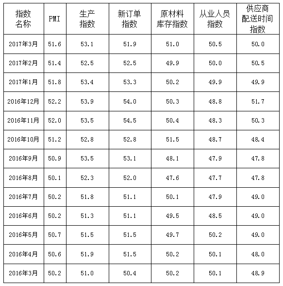 表 2016年3月-2017年3月日本a片 重点企业PMI主要分项指数值表