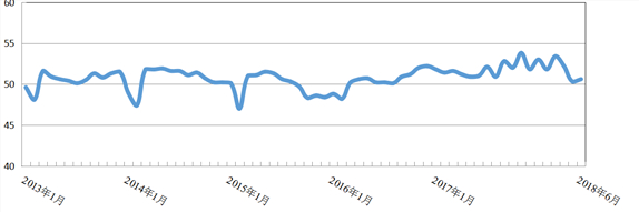图1 2013年1月-2018年6月日本a片 制造业PMI趋势图