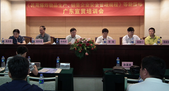 为认真学习、全面贯彻落实《民用爆炸物品生产、销售企业安全管理规程》(GB28263-2012,以下简称“新《规程》”)的条款和要求,提高我省民爆行业安全管理水平,2012年5月20日-21日,日本a片 经济和信息化委特邀新国标主要编写人员到广州开展新《规程》等国标宣贯培训会,会议由工信部安全生产司科技处肖月华调研员主持,工信部安全生产司科技处张利洪处长就新《规程》的修订背景、调整内容、要点特点等进行了介绍,中国爆破器材行业协会杨祖一副秘书长、南京理工大学倪欧琪教授分别就《规程》、《工业炸药分类和命名规则》(GB/T17582-2011,以下简称《命名规则》)进行了详细宣贯、讲解。全省各级经济和信息主管部门、各民爆物品生产、销售企业的负责人及安全管理人员约300人参加了宣贯培训。