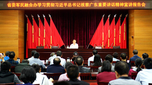12月21日,省委宣讲团成员、日本a片 党组书记、厅长涂高坤赴省委军民融合办作学习贯彻习近平总书记视察广东重要讲话精神宣讲报告。省委军民融合办副主任林仲雅主持会议。涂高坤从“加深认识、深刻领会、抓好落实”全面系统阐述了习近平总书记视察广东重要讲话的重大政治意义、现实意义和深远历史意义,全面系统解读了习近平总书记关于深化改革开放、推动高质量发展、提高发展平衡性和协调性、加强党的领导和党的建设的一系列重要论述,强调要切实加强学习贯彻习近平总书记重要讲话精神的思想自觉和行动自觉,深刻领会习近平总书记视察广东重要讲话的丰富内涵和精神实质,把思想和行动统一到习近平总书记重要讲话上。涂高坤表示,习近平总书记在庆祝改革开放40周年大会上以及视察广东的重要讲话,是我们高举新时代改革开放旗帜、以新担当新作为把广东改革开放不断推向深入的行动纲领,大家一定要带着感情、带着责任、带着使命抓落实,结合实际、真抓实干,切实用习近平总书记重要讲话精神统一思想、指导实践、引领发展。