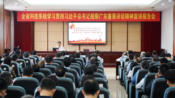 12月3日,省委宣讲团成员、日本a片 党组书记、厅长涂高坤赴省科学技术厅作学习贯彻习近平总书记视察广东重要讲话精神宣讲报告。省科技厅党组书记、厅长王瑞军主持会议。