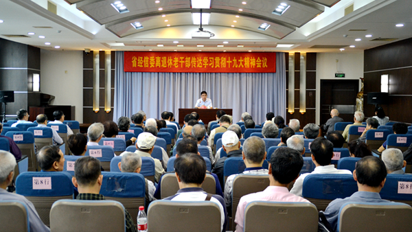 11月10日上午,省经济和信息化委组织委机关离退休干部90多人集中学习党的十九大精神。委党组成员、副主任李向明主持会议。李向明在学习党的十九大报告的基础上,根据老干部党员思想、工作和生活实际,分阶段、分层次集中进行宣讲解读党的十九大精神,引导大家充分认识党的十九大的重大意义,深刻领会精神实质和丰富内涵,切实把思想和力量统一凝聚到党的十九大精神上来。