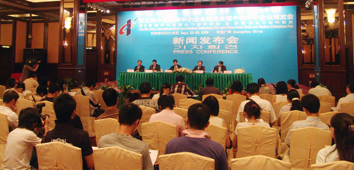 第五届中国国际中小企业博览会暨中韩中小企业博览会组委会9月17日在广州召开了新闻发布会。省政府副秘书长、第五届中博会组委会秘书长林英通报了中博会各项工作筹备情况和本届中博会的特点和亮点,韩国驻广州领事馆金彰南介绍了韩国筹备参加第五届中博会的情况。工业和信息化部中小企业司副司长、第五届中博会组委会秘书处副主任郑昕作了讲话,省经贸委巡视员、第五届中博会组委会秘书处副主任戚真理对记者提出的问题作了回答。发布会由省政府新闻办公室李守进主持。