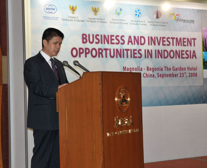 我们相信,有广东和印尼双方领导人的高度重视,有广东与印尼合作的良好基础,中印经贸合作的前景广阔,商机无限。我们诚挚的欢迎到会的印尼企业家在广东参观考察,投资合作,拓展商机。广东将充分利用现有的条件,加强双方在能源、电力、农产品和基础设施建设等领域的合作,为双方企业间交流与合作创造有利条件,为推动双方企业互利发展多办好事、多办实事。