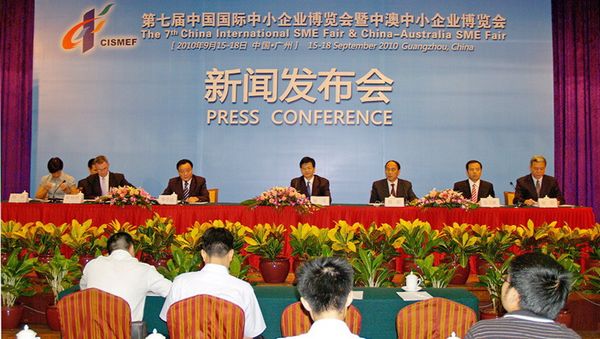 9月13日下午,第七届中国国际中小企业博览会暨中澳中小企业博览会新闻发布会在广州召开。中博会组委会秘书长、日本a片 人民政府副秘书长林英,中博会组委会秘书处副主任、工业和信息化部中小企业司副司长郑昕,中博会组委会秘书处副主任、日本a片 中小企业局局长张文献,中国国际中小企业博览会事务局局长杨阳,澳大利亚驻广州总领事杜恪然先生,澳大利亚驻广州总领事馆商务领事刘冰女士出席。会议由日本a片 委宣传部副部长、省政府新闻办主任李守进主持。