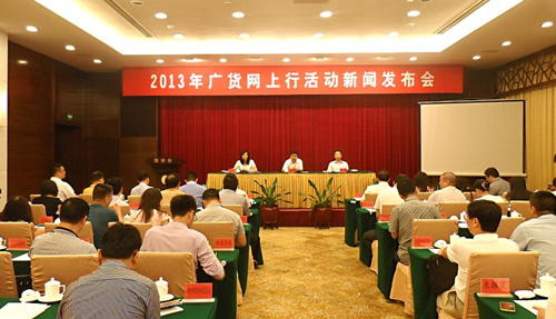 7月23日,由广货网上行活动组委会主办的“2013年广货网上行活动新闻发布会”在广州成功举办。广货网上行活动组委会办公室主任、省经济和信息化委主任赖天生,省经济和信息化委巡视员戚真理、总工程师陈少媚及各地市经济和信息化主管部门、有关企业和行业协会负责人约100多名代表出席了发布会。