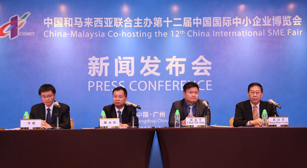会上,马来西亚驻广州总领事馆商务副领事陈益升介绍了马来西亚联合主办第十二届中博会的情况,马中总商会总会长、拿督黄汉良介绍了11月份在马来西亚召开的马中企业家大会情况。姚德洪、周健分别就中小企业投融资、国际化发展等问题回答了记者提问。