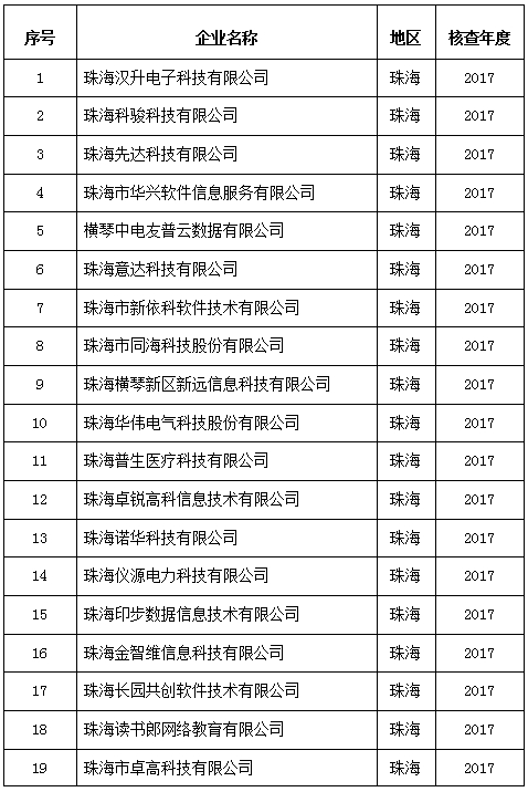 经材料核查和现场抽查,珠海汉升电子科技有限公司等40家企业2017年度符合49号文规定的软件企业条件,现公示如下: