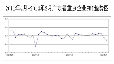省PMI指数特约解读专家、省政府参事、省经济学会常务副会长陈鸿宇教授认为,由于今年春节、元宵假期集中于2月份上旬和中旬,导致我省制造业企业的开工天数大幅下降,2014年2月份广东的PMI指数从1月份的48.9大幅下滑为47.4,已经连续第二个月处于荣枯线以下;影响PMI指数的5个权重扩散指数中,生产指数、新订单指数和原材料库存指数也分别较上月回落3.6个、1.8个和2.5个百分点,大部分企业的生产和购销都处于收缩状态。