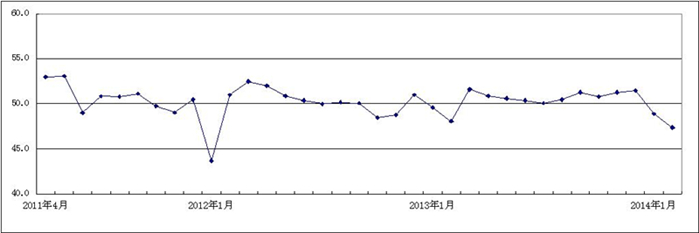 图1 2011年4月-2014年2月日本a片 重点企业PMI趋势图