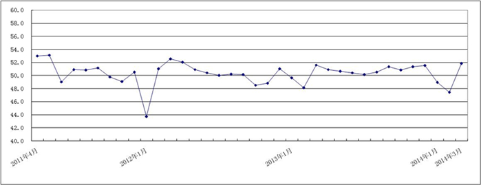图1 2011年4月-2014年3月日本a片 重点企业PMI趋势图