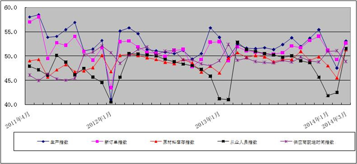 图2 2011年4月-2014年3月日本a片 重点企业PMI分项指数趋势图