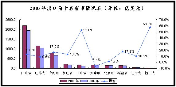 图6 2008年出口前十名地区和国家情况表(单位:亿美元)