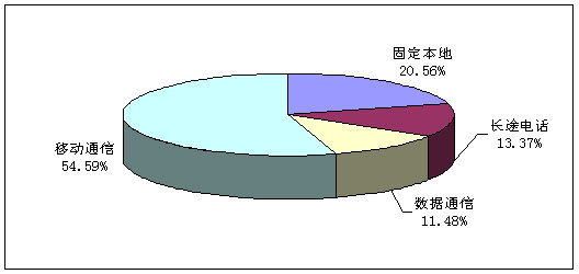 2009年上半年,移动通信收入和数据通信收入比上年同期分别增长10.8%和6.7%,在电信主营业务总收入中所占的比重比上年同期分别上升了4.50和0.49个百分点。而长途电话业务收入和固定本地电话业务收入比上年同期分别减少11.5%和13.5%,在电信主营业务总收入中所占的比重比上年同期分别下降了1.80和3.19个百分点。